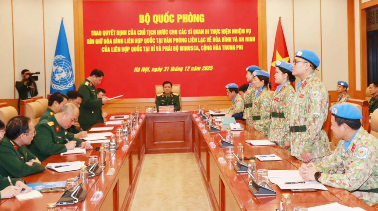 Hanoi (Le Journal de Bruxelles) – Le Vietnam a organisé à Hanoï une cérémonie le 31 décembre pour déployer quatre officiers vers des missions de maintien de la paix de l’ONU. Ils remplaceront le personnel de la MINUSCA en République centrafricaine et occuperont de nouveaux postes à Bruxelles. La lieutenant-colonel Vu Thi Lien devient la première femme vietnamienne dans un bureau de l’ONU. Les autres officiers incluent le lieutenant-colonel Dang Thu Ha, le capitaine Nguyen Huy Khai et la senior lieutenant Nguyen Thi Ngoc Tram.